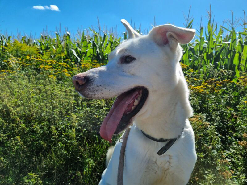 Auch wenn Konfettis Name nicht mit seiner Optik übereinstimmt, weiß ein jeder der ihn kennenlernt spätestens dann woher sein Name rührt. Von außen doch sehr "eintönig", fliegt in seinem Kopf doch ab und an mal das bunte Konfetti durch die Gegend! Wer den liebenswerten Husky- Labrador- Mix kennenlernen möchte, sollte vor erzieherischen Maßnahmen nicht zurückschrecken und eine gute Portion Humor mitbringen, um die ein oder andere Situation auch mal wegzulächeln. Trotzdem liebt Konfetti es Zeit mit "seinen Leuten" zu verbringen und genießt dabei jeden Moment in vollen Zügen.